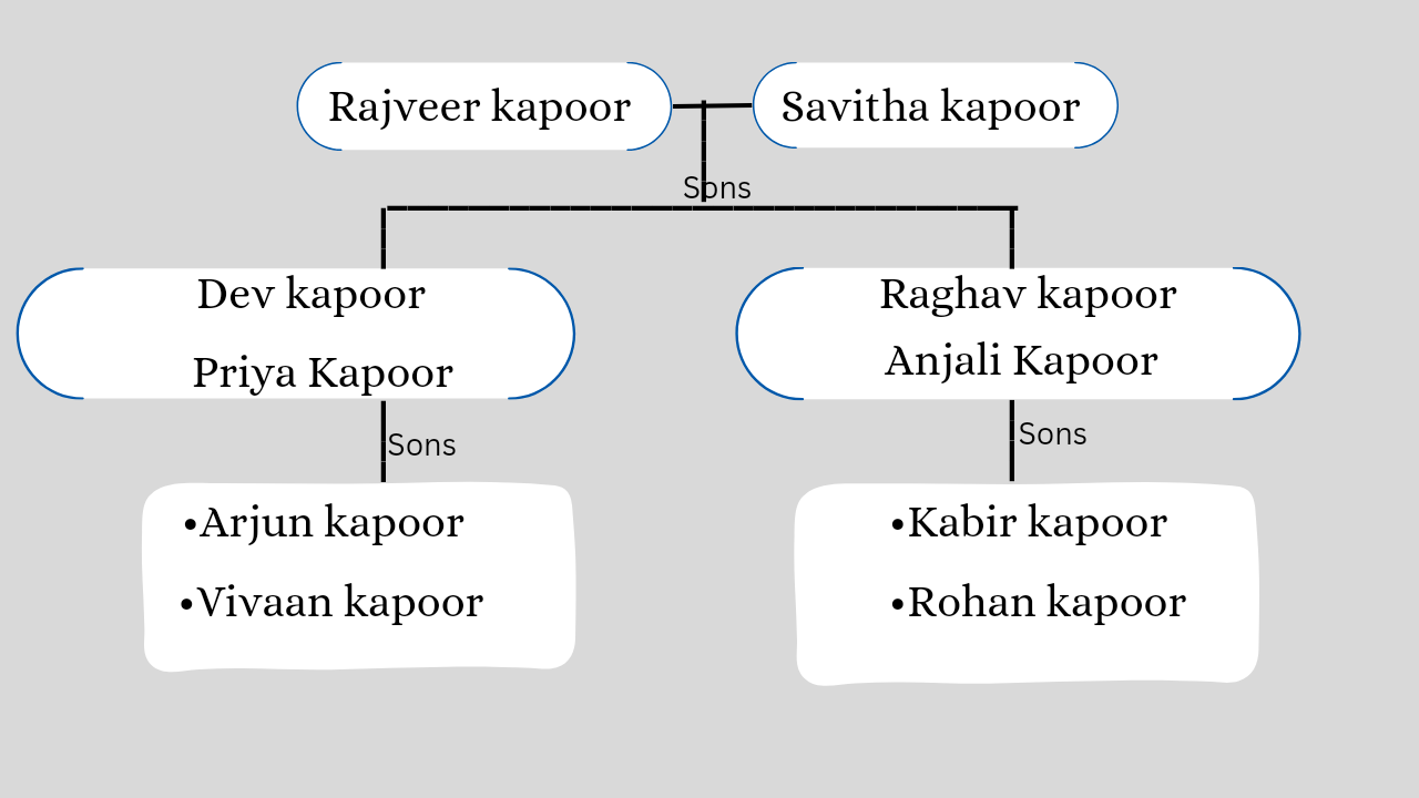 – Eldest son, oversees the entire Kapoor Enterprises and has passed on specific responsibilities to his sons. A strict yet caring father.